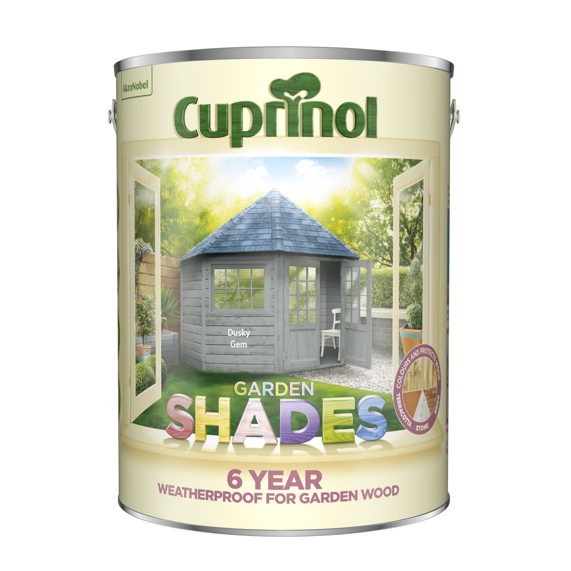 Cuprinol garden shades dusky gem 5 litre. Garden shades dusky gem 5 litre cupgsdg5l. It has a blue tint to it which is very nice! May split @ £12.50 a tin, get in touch. Cuprinol garden shades has been specially developed to colour and protect sheds, fences and other garden wood, with 6 .